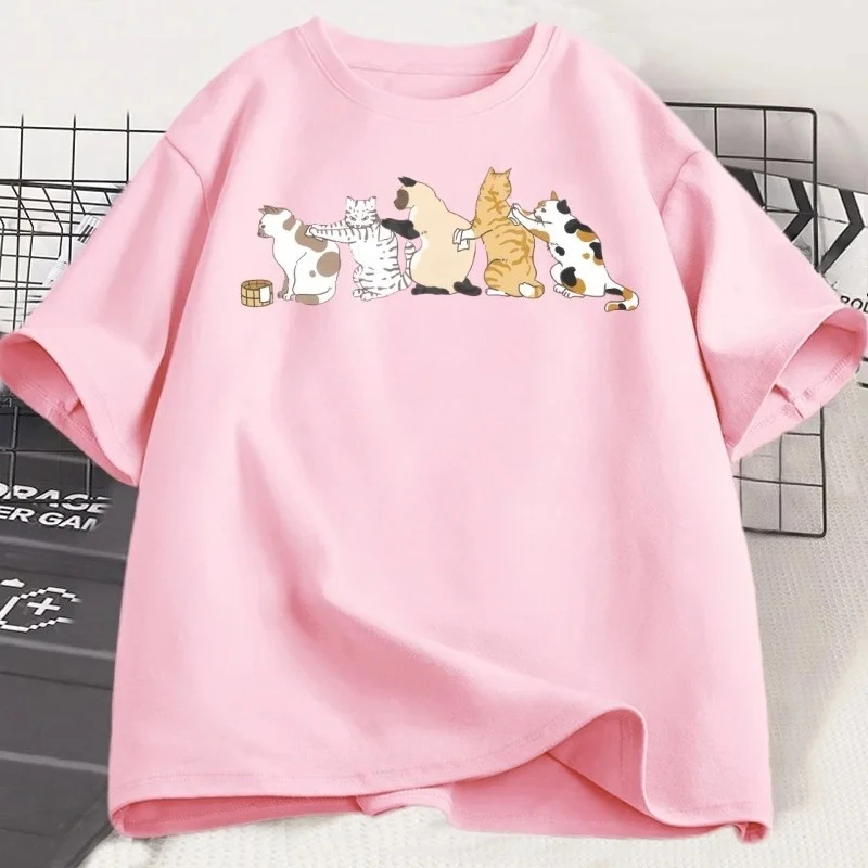 Cat Printed Tshirt Women Summer Cat T-shirt Funny Fashionable Casual Sports Round Neck Short Sleeved T-shirt Tees
